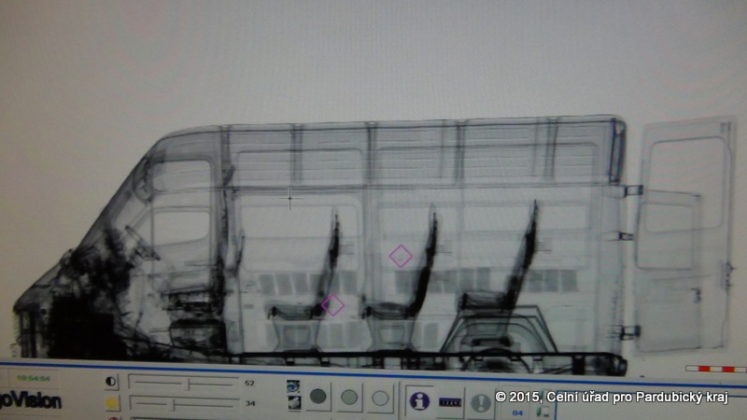 Rentgenový snímek dodávky ukázal, podezřelé věci v dutinách karoserie. V zadních částech opěráků sedadel a za obložením konstrukčních dutin jednoho boku vozidla postupně celníci našli 36 balíčků s vyloupanými tabletami.