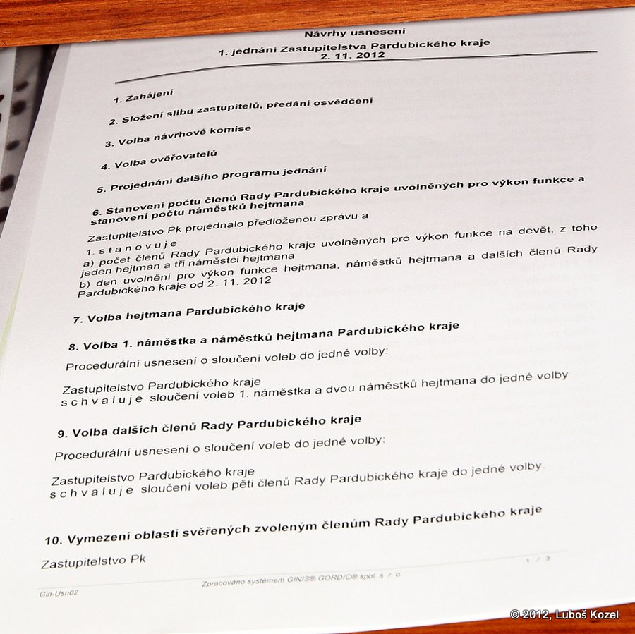 PARDUBICE – Ustavující zasedání zastupitelstva Pardubického kraje z pátku 2.listopadu 2012 ve fotografiích Luboše Kozla.